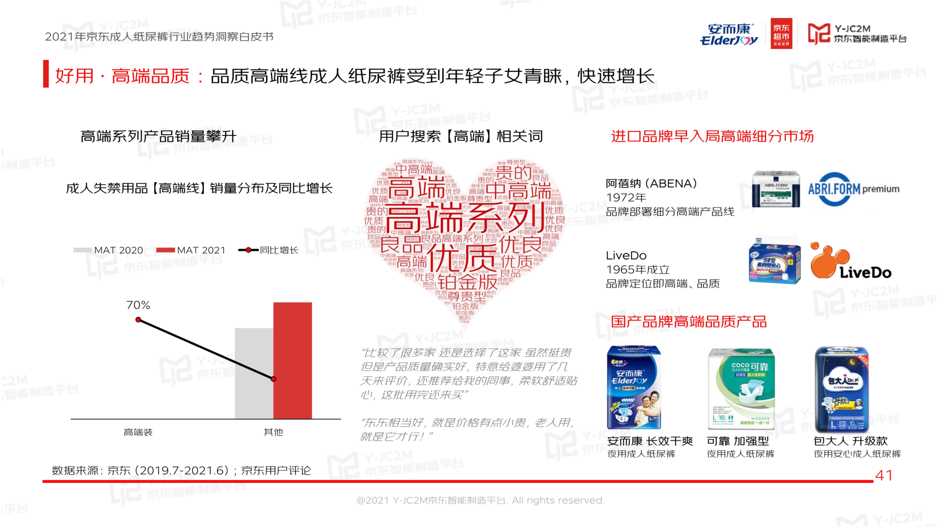 近日,德扑之星集团旗下成人纸尿裤品牌安而康联合京东智能制造平台共同发布《2021年京东成人纸尿裤行业趋势洞察白皮书》(下称《白皮书》),从行业概况、品牌格局、用户洞察、趋势展望四个维度,结合销量数据与消费者,深入剖析了随着我国步入老龄化社会以及消费观念不断升级,国内纸尿裤市场的全新变化与发展趋势。