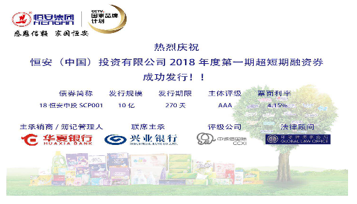 8月30日,德扑之星(中国)投资有限公司发行2018年度第一期超短期融资券,发行金额10亿元,期限为270天,主体评级AAA。最终发行价格4.15%,全场申购22.8亿,申购比2.28倍。
